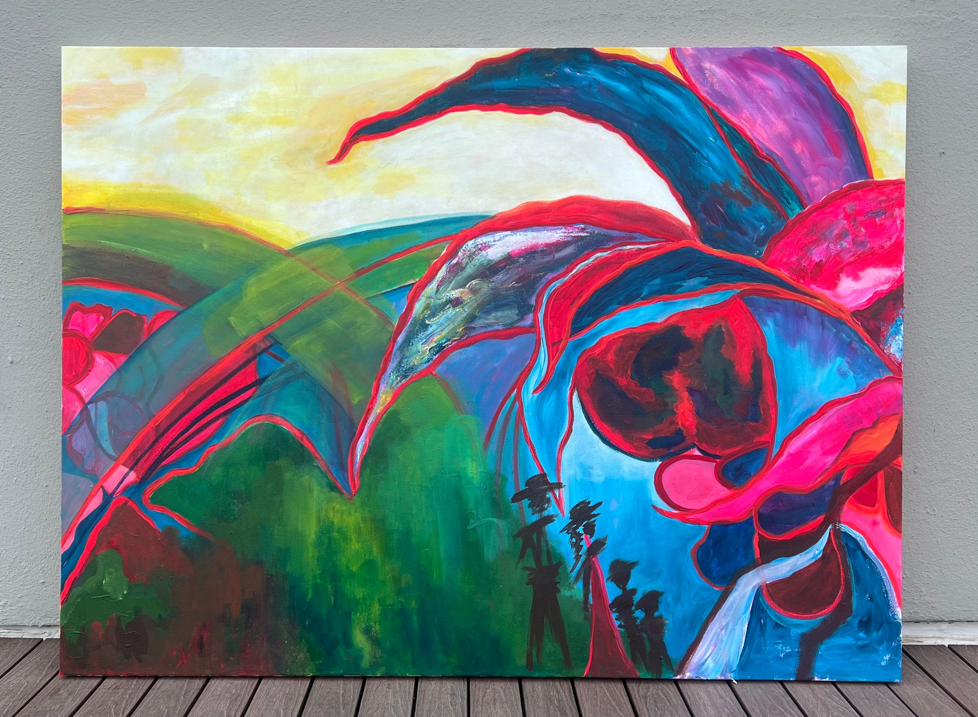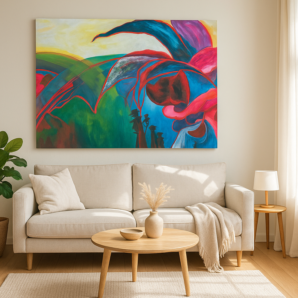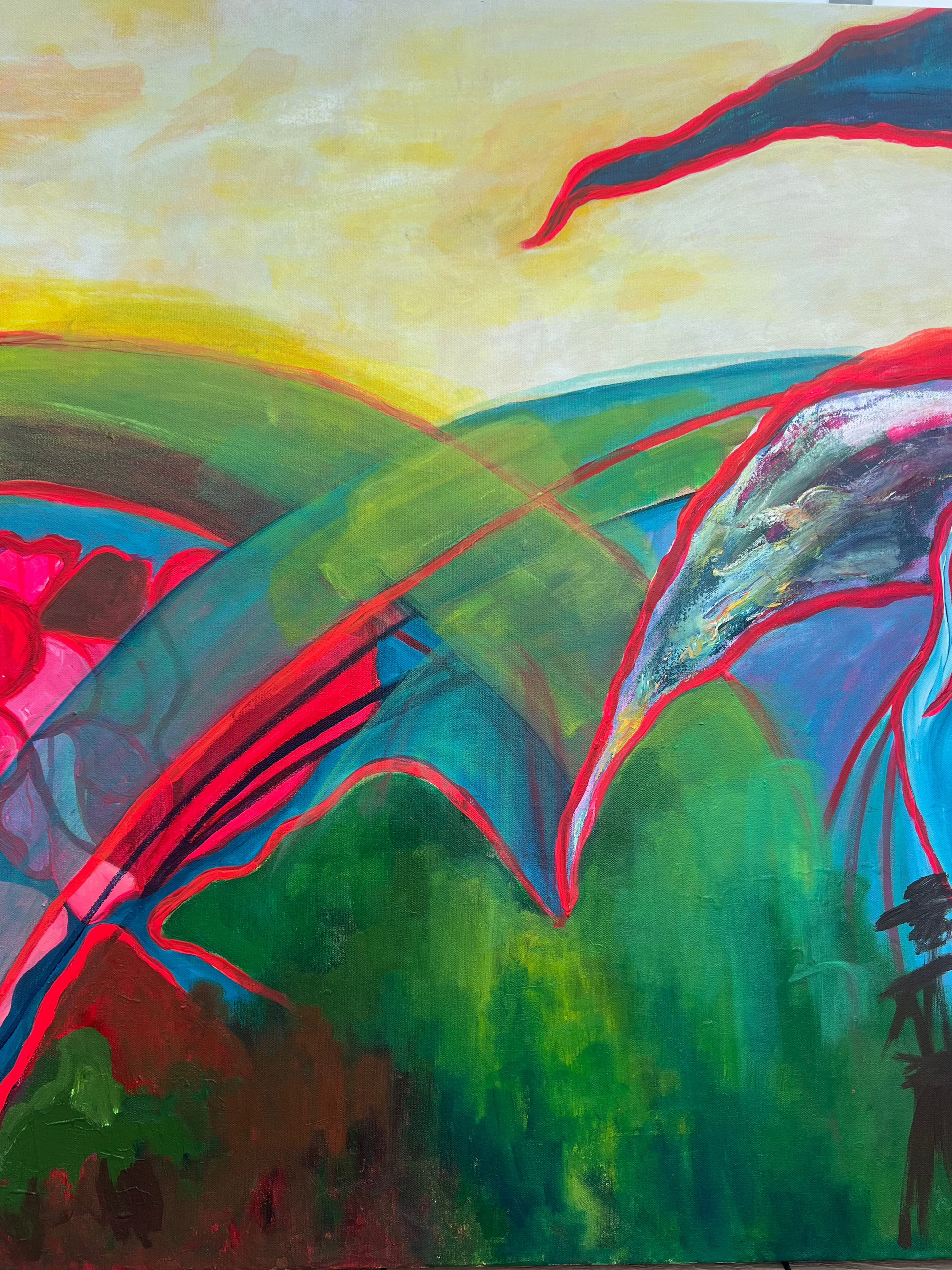 An abstract landscape that feels like a joyful adventure waiting to unfold. 🌟 The vibrant colors and playful textures remind me of the road trip taken in California where the is the beautiful ocean on one side and mountains on the other. It is like embracing the unexpected.