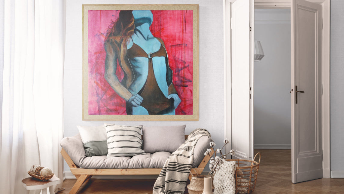 Standing tall, capturing the profound sense of liberation as she breaks free from all barriers. The figure is rendered with graceful flowing lines, embodying strength and serenity. Surrounded with the vibrant colors and abstract forms symbolizing the barriers she has overcome. Reflecting the journey from struggle to freedom. This artwork is a celebration of resilience and the boundless human spirit."